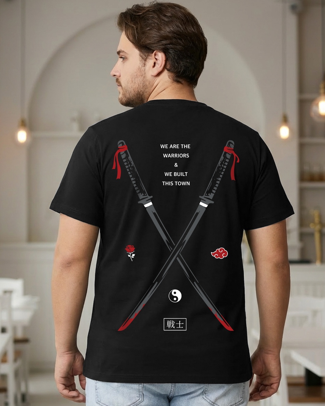 Men's Black Warriors Graphic Printed Plus Size T-shirt