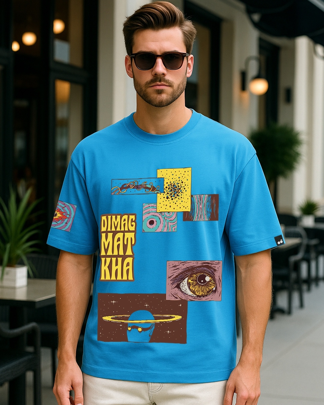 Men's Blue Dimag Mat Kha Graphic Printed Oversized T-shirt