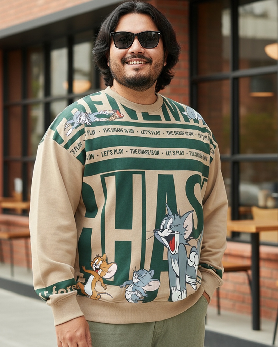 Men's Brown Graphic Printed Oversized Plus Size Sweatshirt