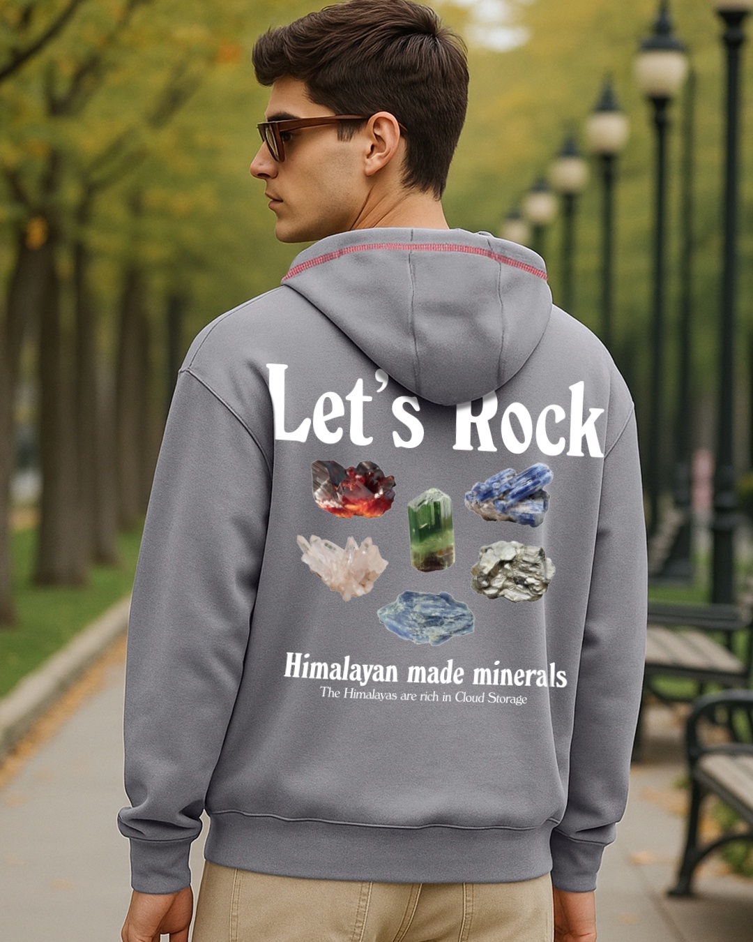 Men's December Sky Grey Minerals Graphic Printed Oversized Hoodies