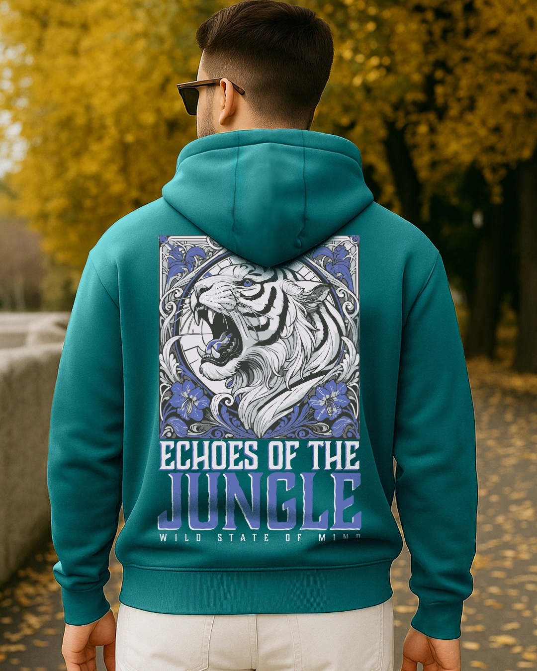 Men's Forest Biome Green Echoes Graphic Printed Oversized Hoodies
