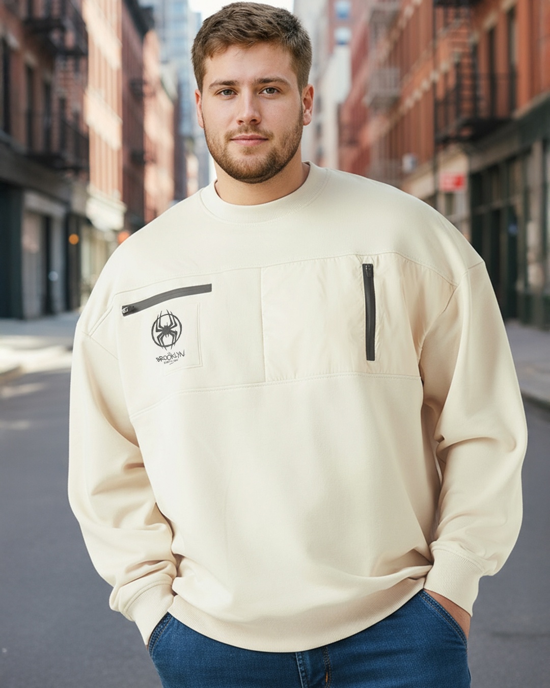Men's Beige Graphic Printed Oversized Plus Size Sweatshirt