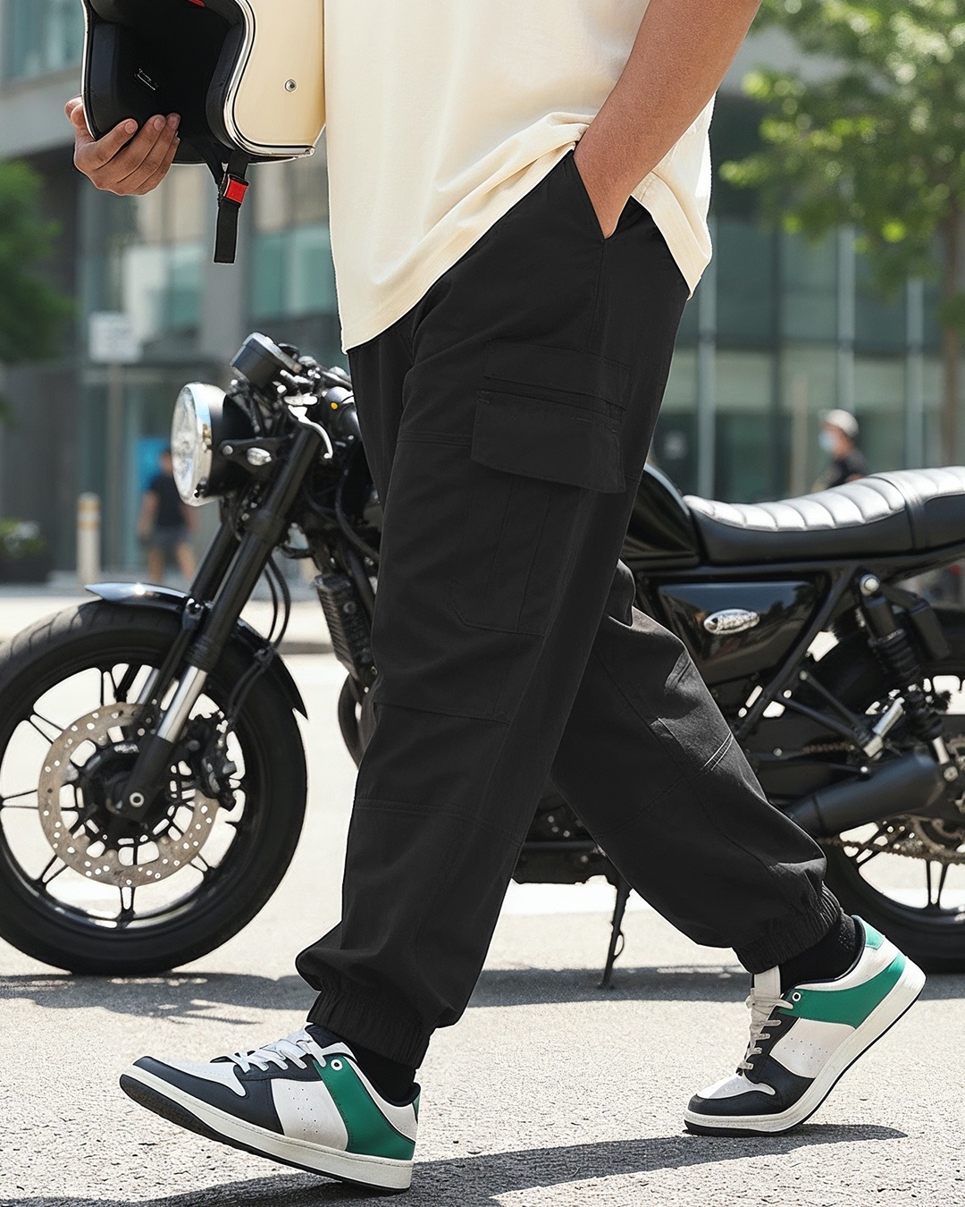 Men's Jet Black Oversized Plus Size Cargo Jogger Pants