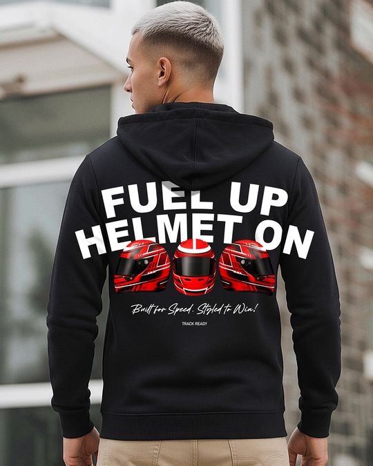 Men's Jet Black Race Ready Graphic Printed Hoodies