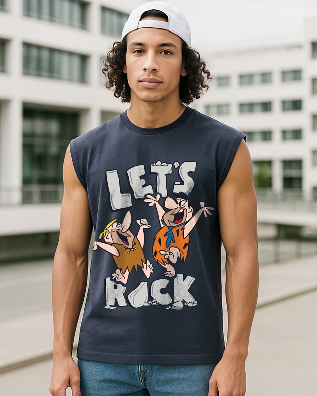 Men's Navy Blue Rock N Roll Graphic Printed Boxy Fit Vest