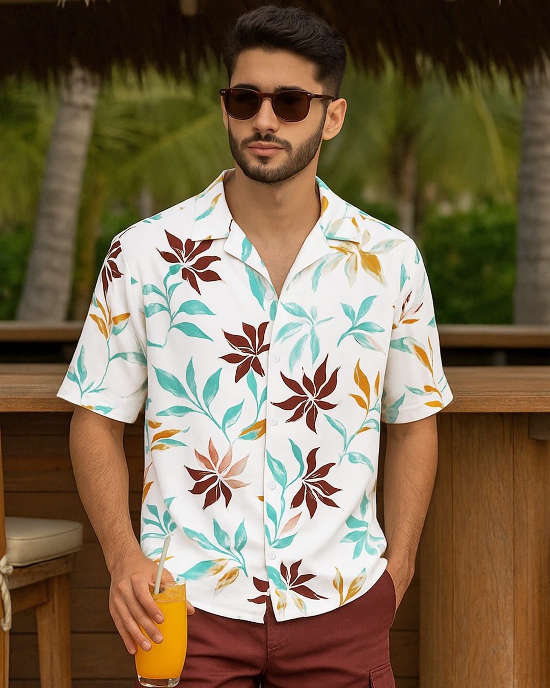 Men's White & Yellow All Over Printed Oversized Shirt