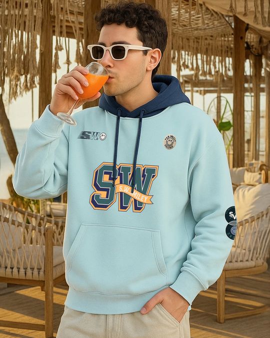 S.W.Smiley Men's Green & Navy Blue Athletic Typography Oversized Hoodies
