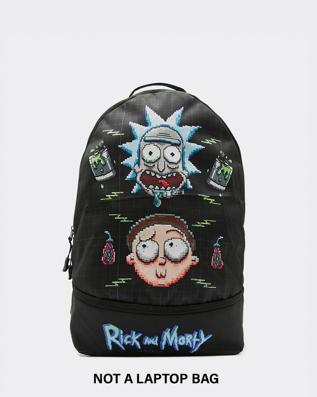 Unisex Black 8-Bit Rick & Morty Printed Small Backpack