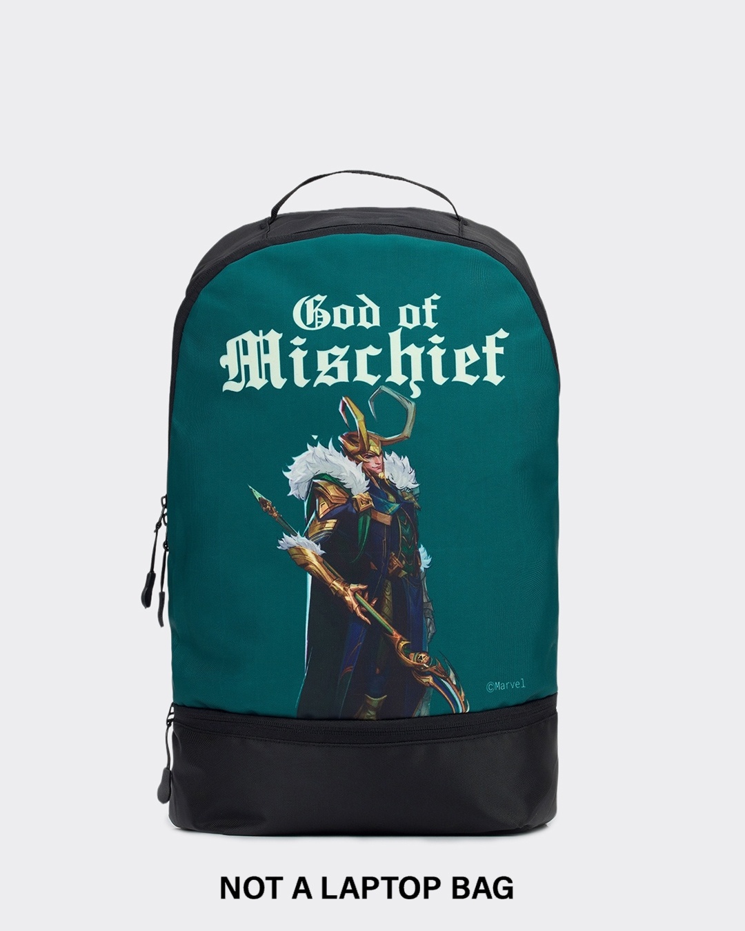 Unisex Green & Black God Of Mischeif Printed Backpack
