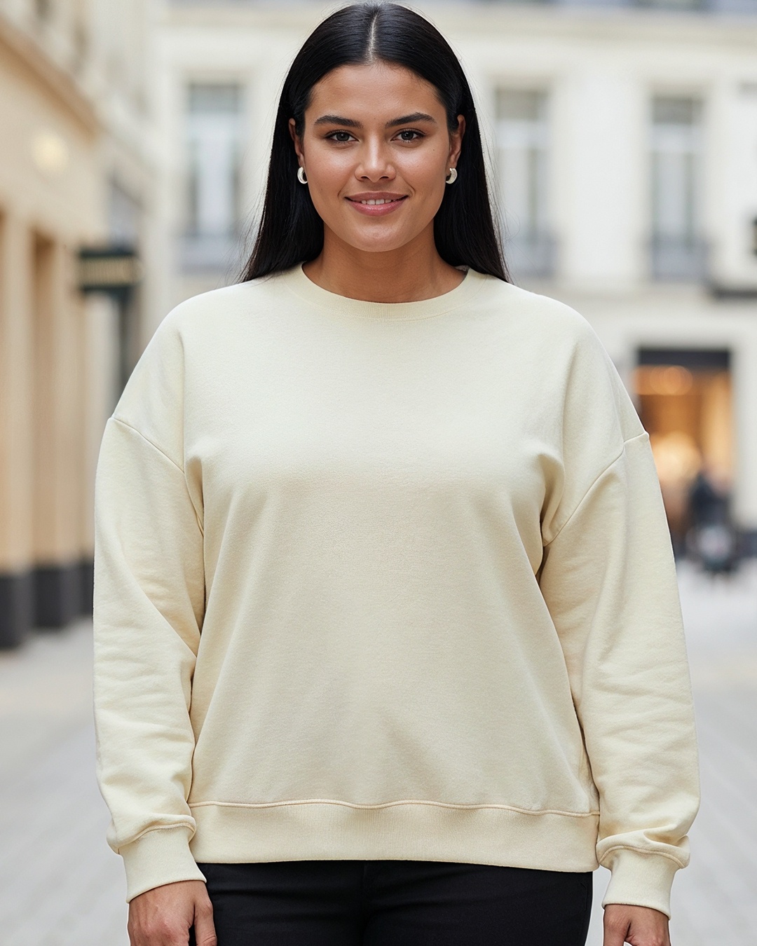 Women's Beige Oversized Plus Size Sweatshirt