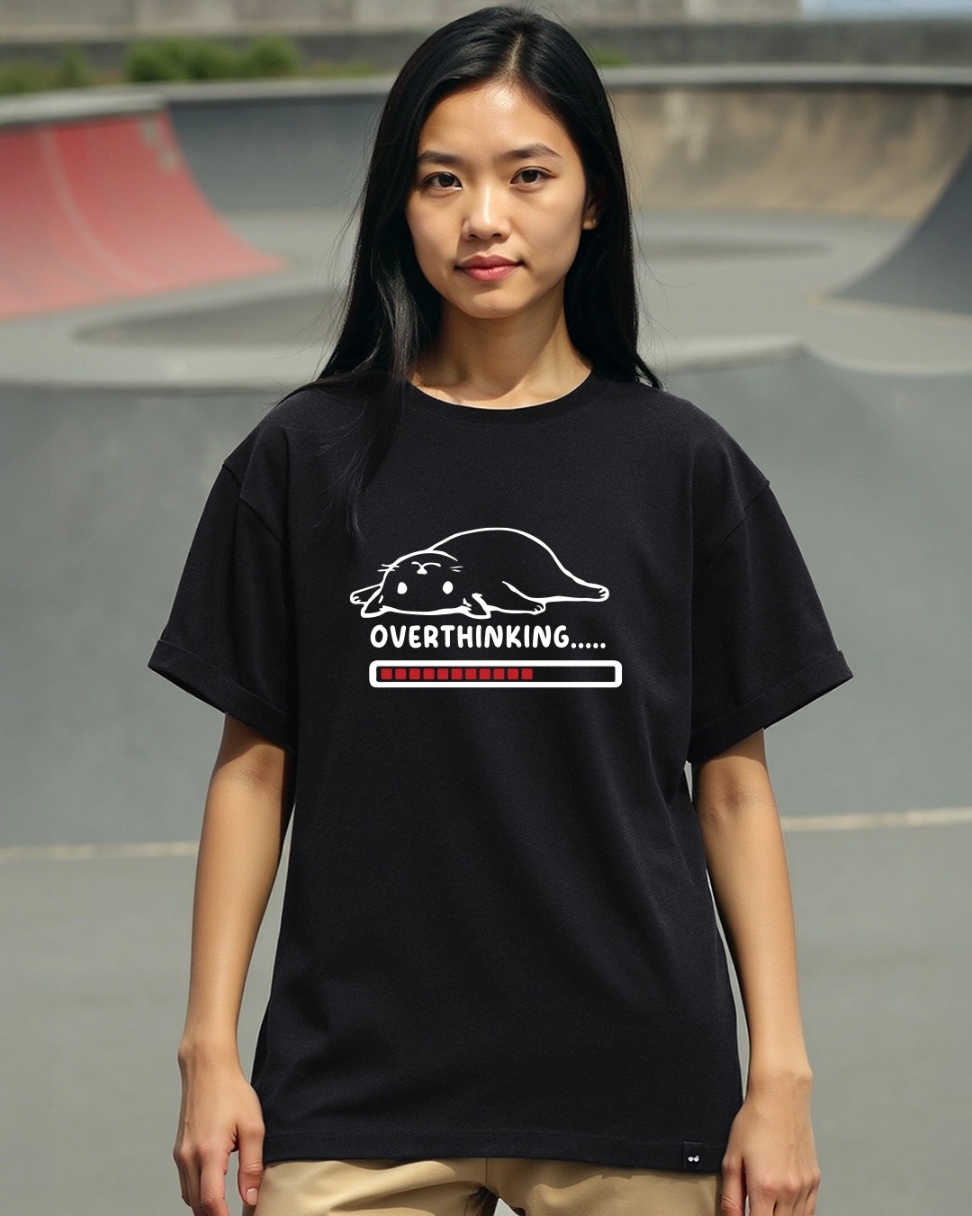 Women's Black Over Thinking Graphic Printed Boyfriend T-shirt