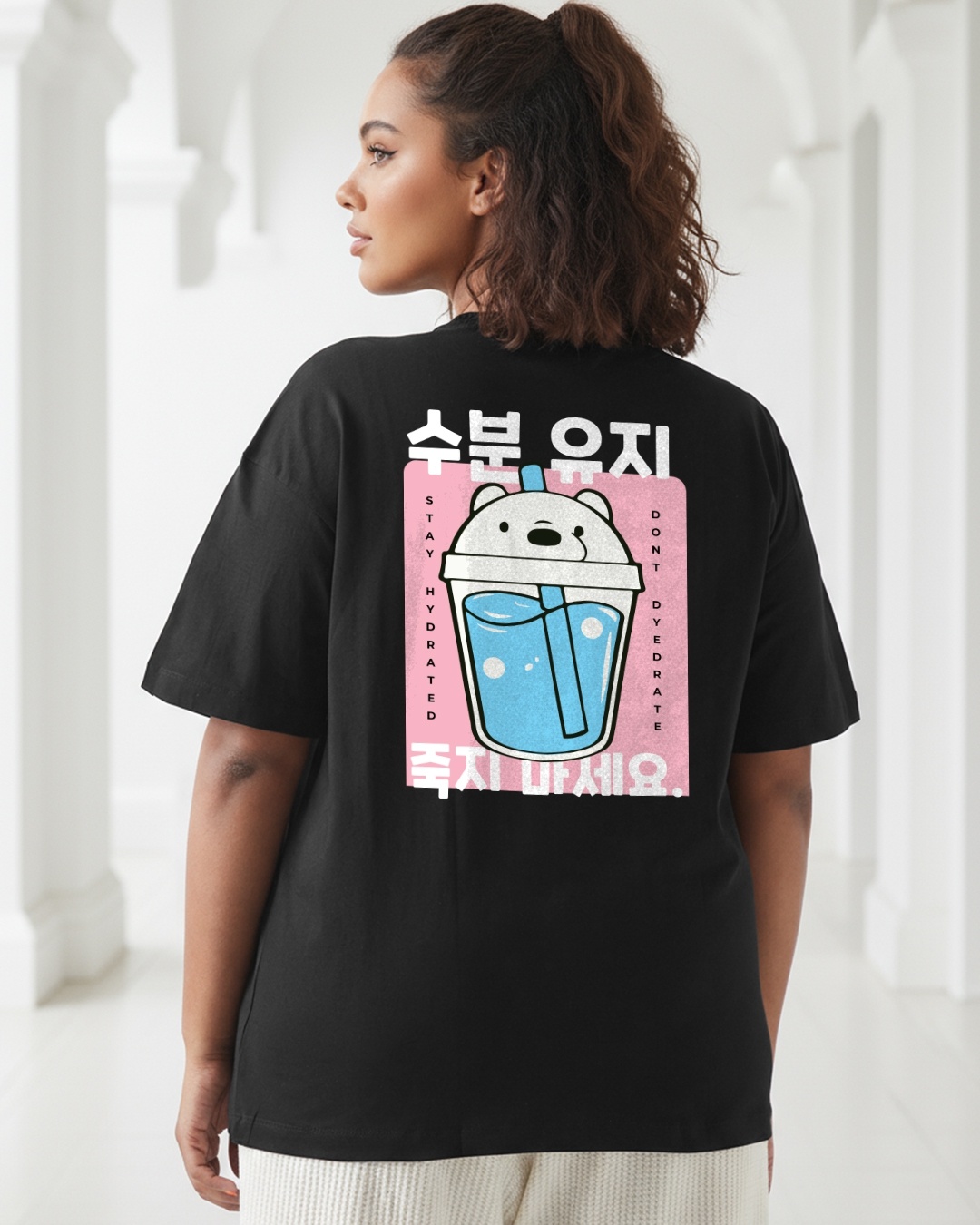 Women's Black Stay Hydrated Graphic Printed Oversized Plus Size T-shirt