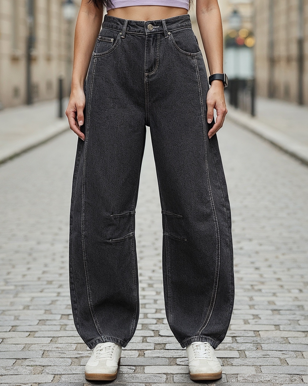 Women's Black Washed Barrel Fit Jeans