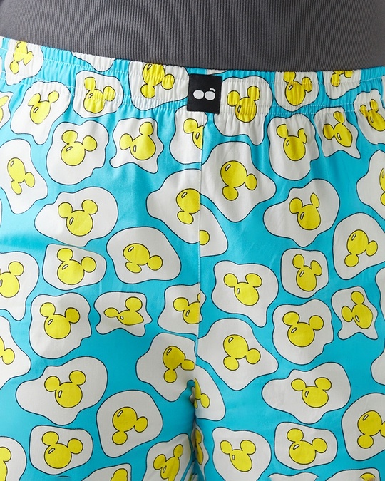 Women's Blue & White All Over Printed Plus Size Wide Leg Pyjamas