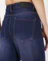 Women's Dark Blue Washed Baggy Straight Fit Jeans