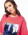 Women's Deep Sea Coral Pink Life At Hogwarts Graphic Printed Oversized T-shirt