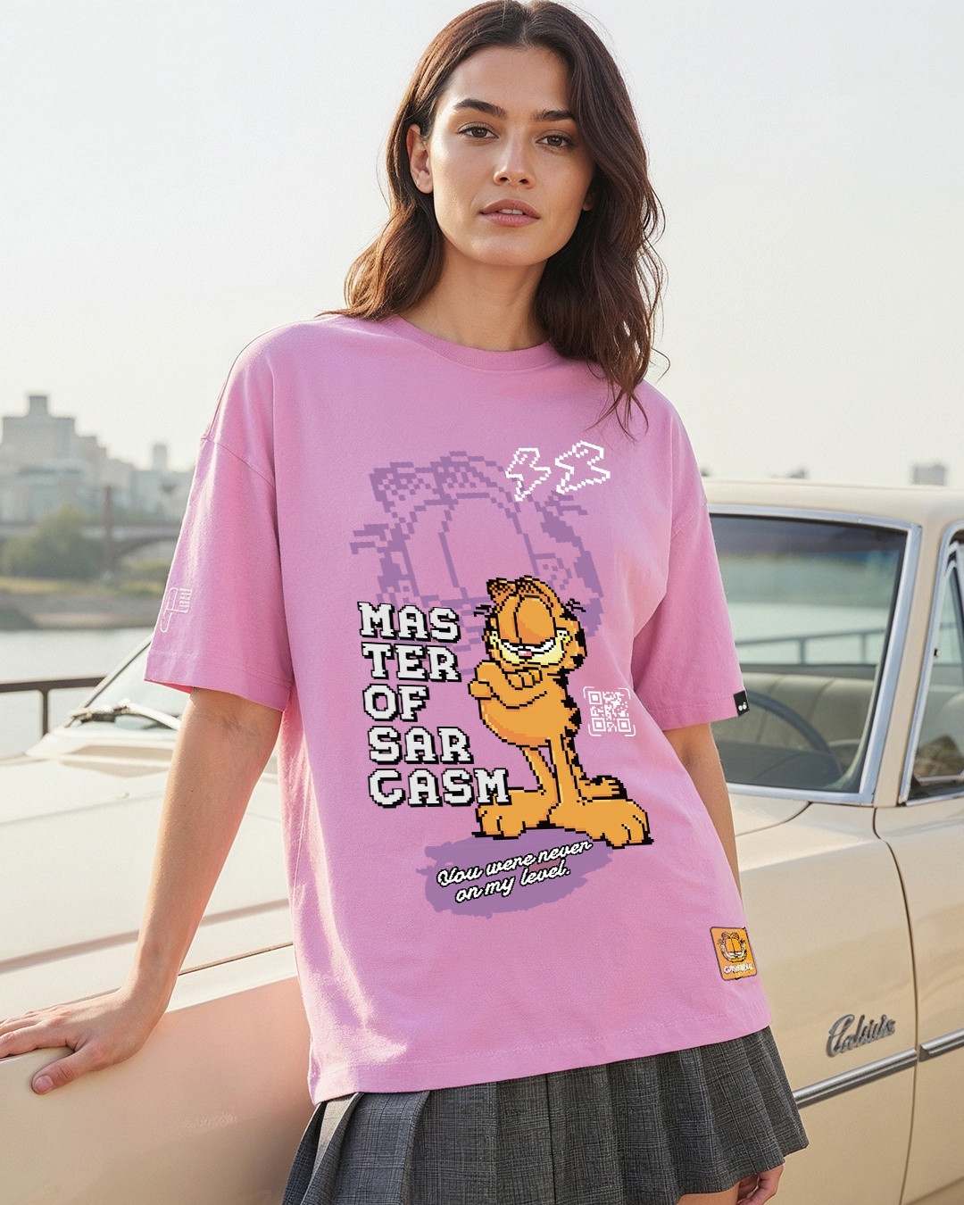 Women's Prism Pink Master Of Sarcasm Graphic Printed Oversized T-shirt